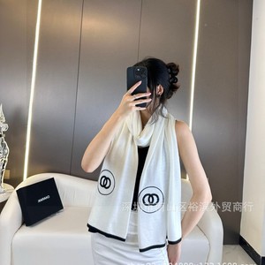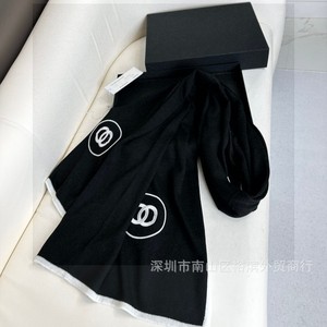 新款香家时尚吴昕娜扎同款羊绒刺绣围巾黑白拼色保暖大牌真丝披肩