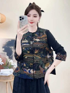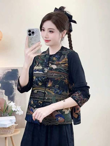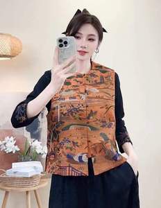 2025秋季国风女装缎面重工祥云刺绣花朵民族风坎肩女式珠扣马甲