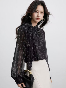 法式波点长袖衬衫衬衣通勤雪纺新款气质上衣