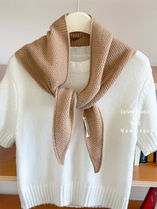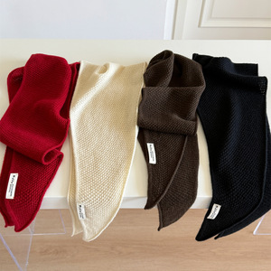 澳洲羊毛软糯高品质三角巾羊绒披肩女韩版简约护颈保暖针织小围巾
