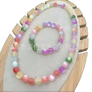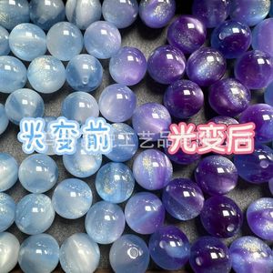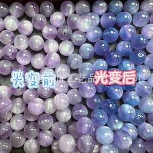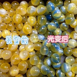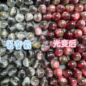 紫外线感光变色猫眼珠子批发10mm树脂手工直孔变色串珠猫眼散珠子
