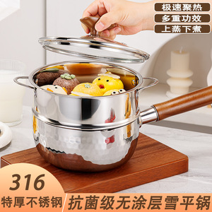 304不锈三层钢雪平锅家用小奶锅宝宝辅食锅不粘锅汤锅电磁炉泡面