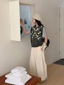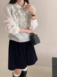 早秋新款温柔风立体花朵针织马甲韩系甜美清新钩花马甲女慵懒减龄