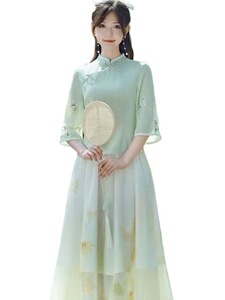 新中式汉元素禅意茶服旗袍两件套改良汉服女文艺国风仙气上衣套装
