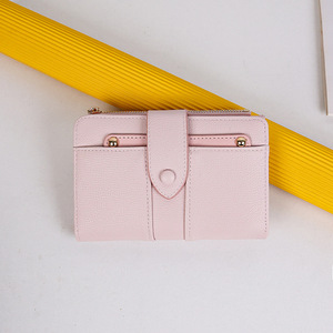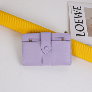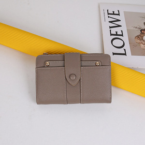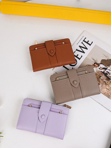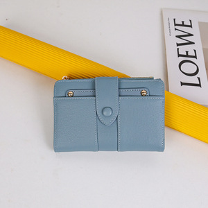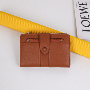 跨境新款女士钱包中长款纯色高级感大容量两折PU折叠皮夹零钱卡包