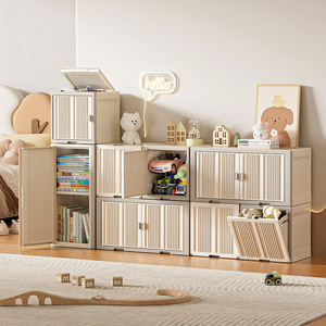 侧开门--魔方收纳箱-奶白灰(PP材质)