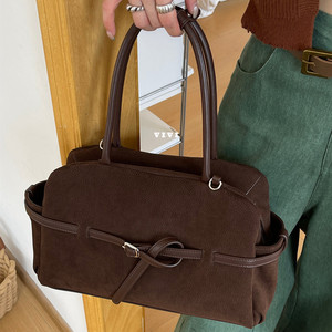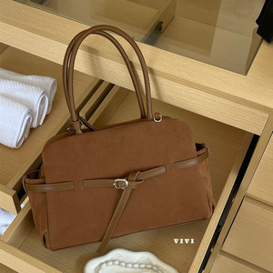 网红同款复古翻毛皮托特包2025新款高质感大容量皮带扣斜挎手提包