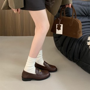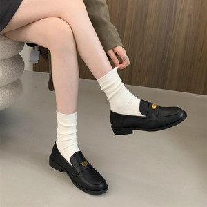 韩版金币小皮鞋女英伦风法式复古圆头通勤休闲一脚蹬粗跟乐福鞋子