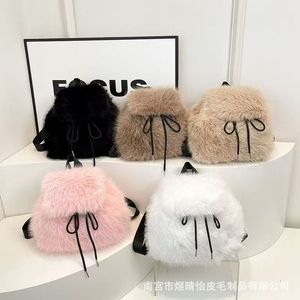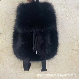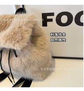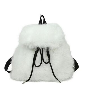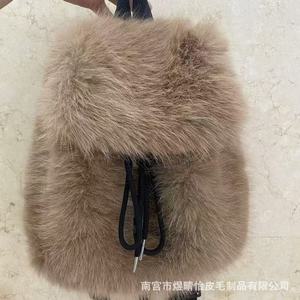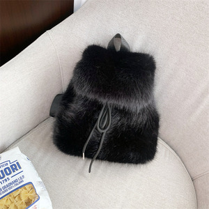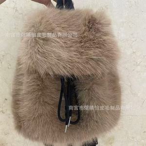 批发毛绒双肩包女秋冬新款抽带撞色背包毛毛学生背包仿狐狸毛