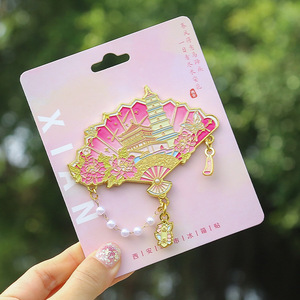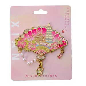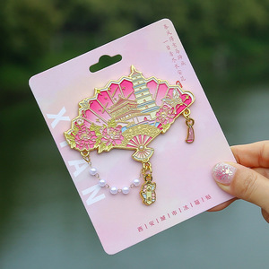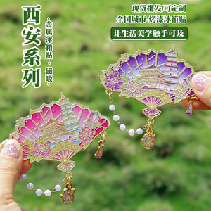 国潮古风西安冰箱贴纪念品扇形西安景点金属伴手礼文旅游汉服配饰