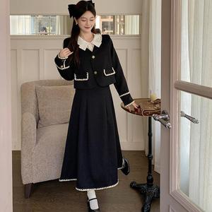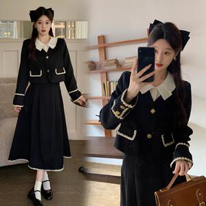 女装秋冬款新品两件套法式复古大码女装胖mm假两件外套+半身裙女