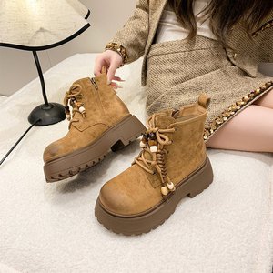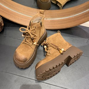 串珠舒适透气轻便厚底增高时装靴女2025新款秋季百搭舒适短靴子潮