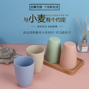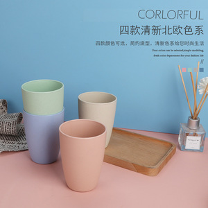 跨境亚马逊小麦秸秆漱口杯大肚杯儿童牙刷杯塑料洗漱水杯家用杯子