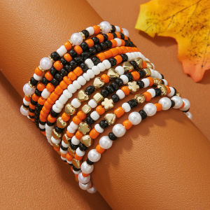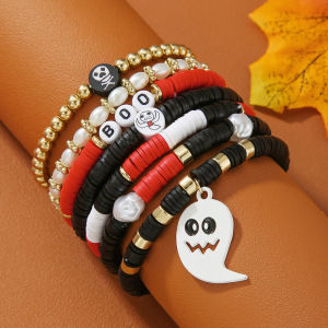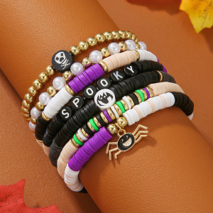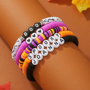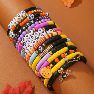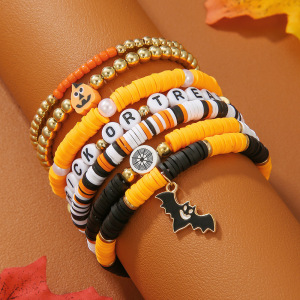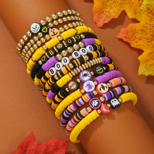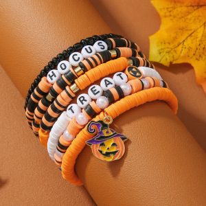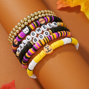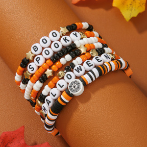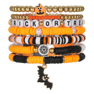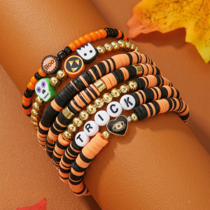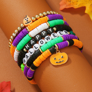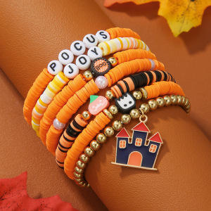 欧美字母手链串珠叠戴时尚套装组合万圣节配饰多层软陶南瓜手串女