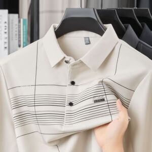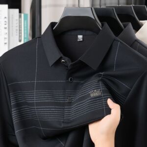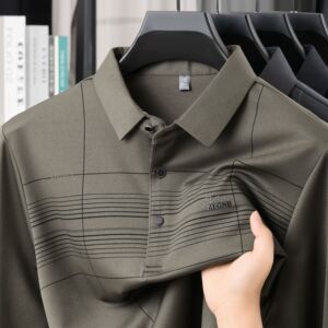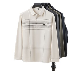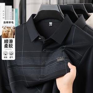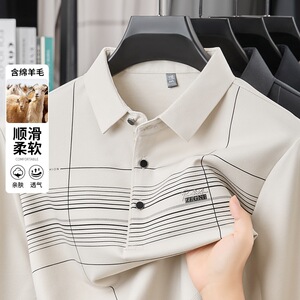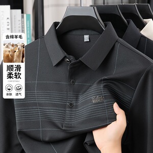 爸爸装秋装含羊毛长袖T恤中年男士翻领上衣打底衫中老年衣服男装