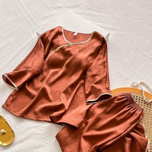 短袖长裤真丝睡衣套装女春夏新款桑蚕丝中国风家居服带胸垫