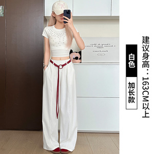韩系慵懒感弯刀阔腿裤女2025夏季新款简约压褶遮肚休闲百搭气球裤