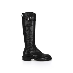 水洗牛皮~葡萄妈真皮粗跟扣带高筒靴子复古骑士长靴女显瘦长筒靴