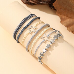 欧美跨境波西米亚复古时尚CCB星星编制绳米珠串珠堆叠手链七件套