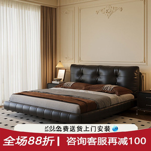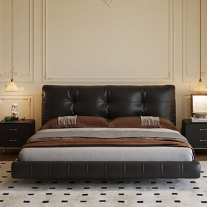 可铭乐仙女床小红书黑色皮艺床轻奢小户型意式网红软床主卧悬浮床
