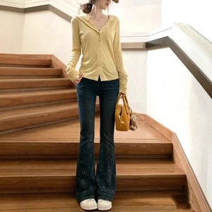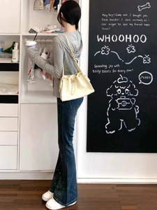 驴家老花重工烫钻牛仔裤女春秋新款设计感高腰显瘦宽松阔腿微喇裤