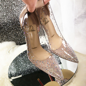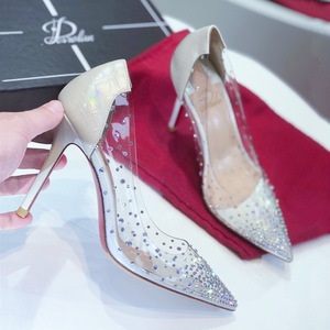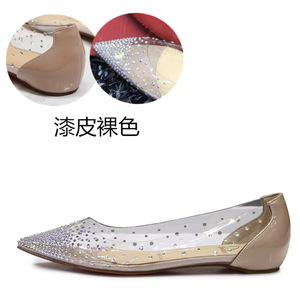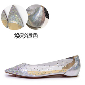 气质单鞋女2025夏新款温柔仙女水晶鞋伴娘尖头透明水钻平底鞋