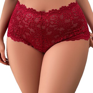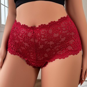 跨境欧美外贸专供大码女士平角裤蕾丝包臀超薄半透明火辣显臀内裤