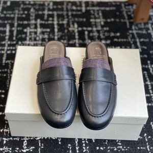 bc真皮包头半拖鞋2025春夏新款一脚蹬时髦百搭懒人鞋软底平底拖鞋