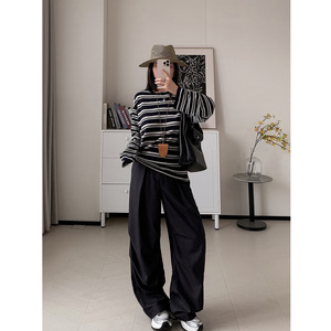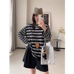 原C!黑白条纹水溶羊毛针织衫女2025新款圆领长袖宽松显瘦上衣