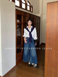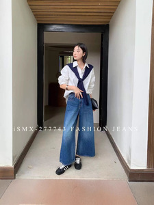 iSMX277743小个子筒喇裤女2025秋季新款高腰桶裤九分阔腿裤牛仔裤