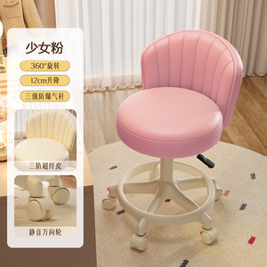 奶油风化妆椅家用椅子靠背梳妆台凳子女生卧室升降转椅美甲凳滑轮