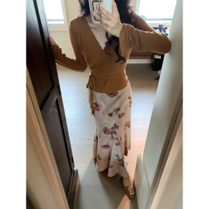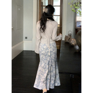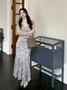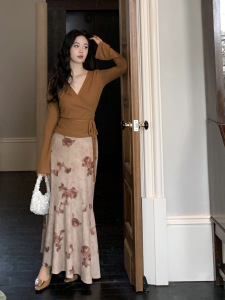 【夕照】SYT自制时髦显瘦高腰花朵半身裙女秋季新款A字印花鱼尾裙