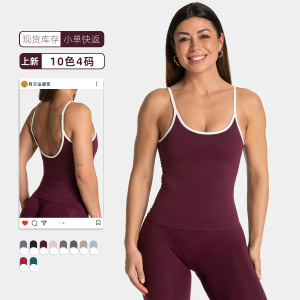 2025夏季新款拼接吊带修身漏背高弹运动健身跑步瑜伽撞色吊带上衣