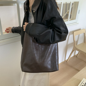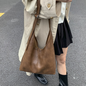 跨境大容量文艺简约通勤休闲2025新款质感复古托特手提单肩腋下包