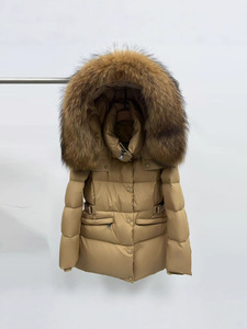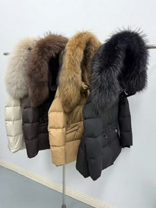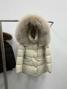 2025冬季新款欧货狐狸大毛领白鹅绒羽绒服女短款连帽收腰加厚外套