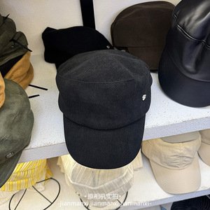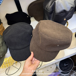复古新款灯芯绒报童鸭舌帽女显脸小结构素色简约短檐报童帽批发潮