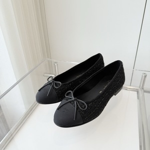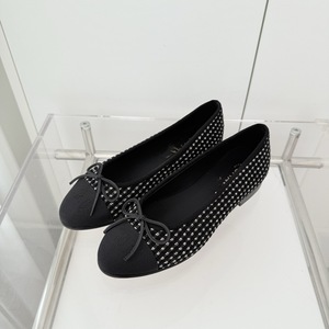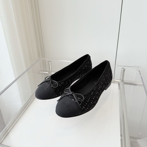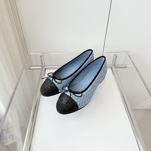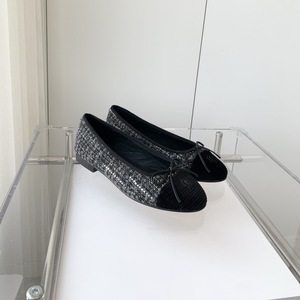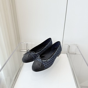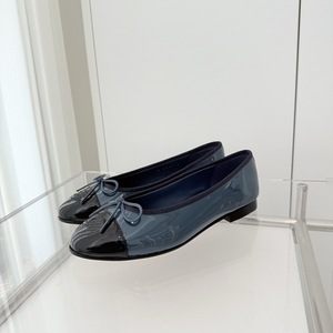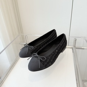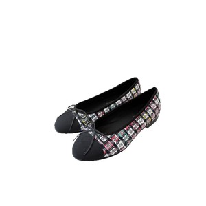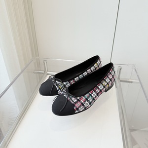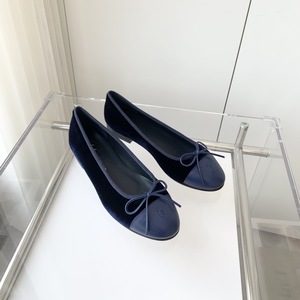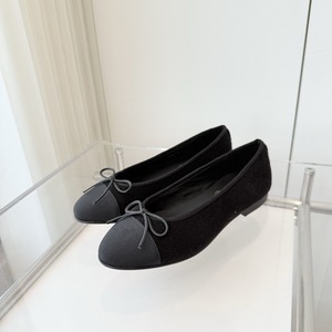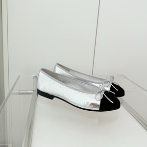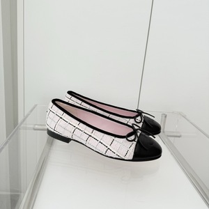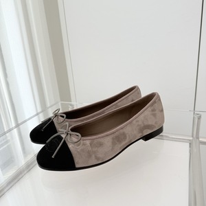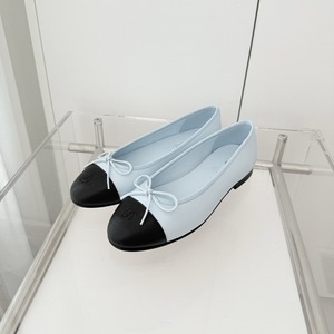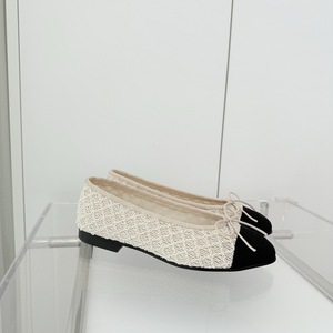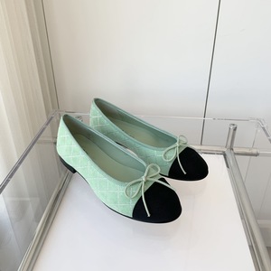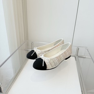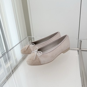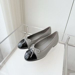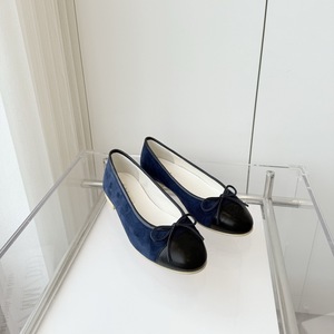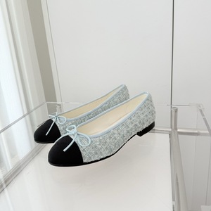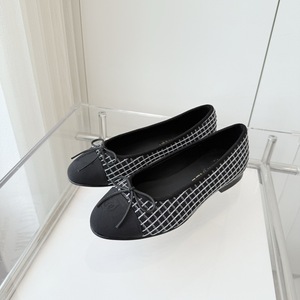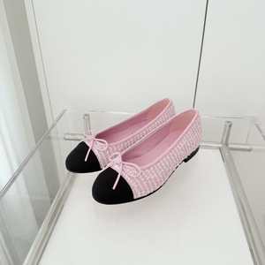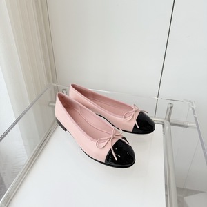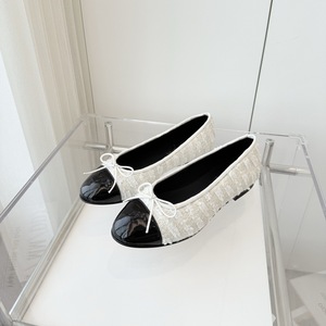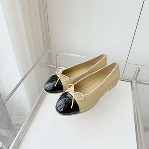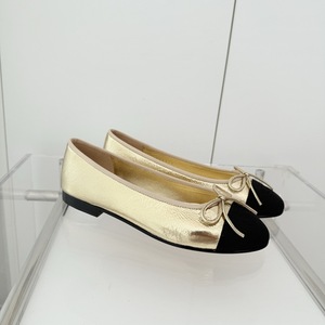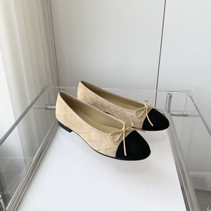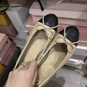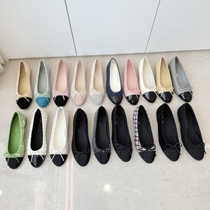 外贸新款蝴蝶结cc芭蕾舞鞋女小香风平底鞋浅口拼色休闲真皮女鞋
