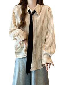 米色条纹【新款流行上衣/美式高街/小众不撞款茶里茶气别致/又a又飒/奶系/漂亮洋气小衫/东大门女装欧