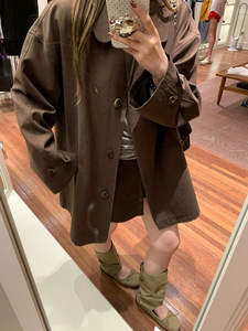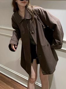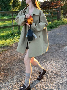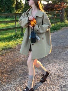 i向 诺丁山街角’质感满满韩系翻领小个子中长款风衣外套女秋季