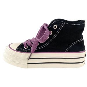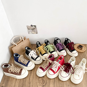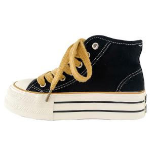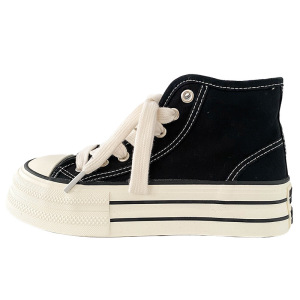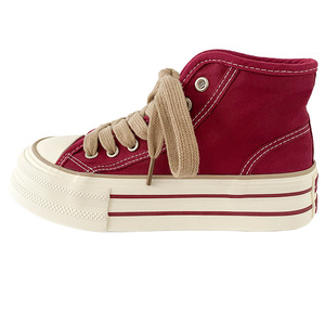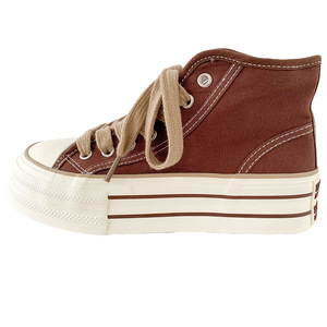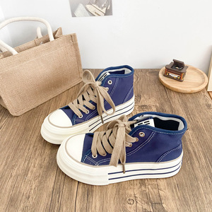 H1519 厚底高帮帆布鞋女鞋2025新款港风爆款复古圆头小众百搭板鞋