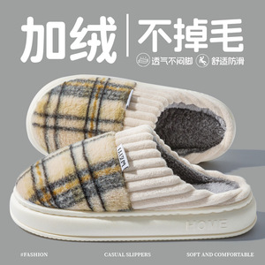 新款棉拖鞋男士情侣厚底加绒加厚耐磨居家外穿保暖棉拖鞋女秋冬季