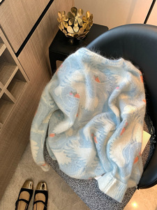 蓝色钉珠亮片马海毛毛衣女2025秋季新款慵懒风软糯别致减龄针织衫