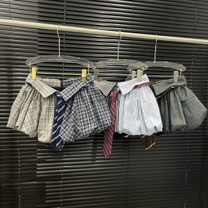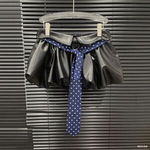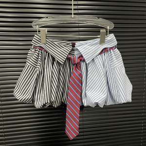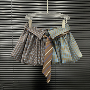 2025新款女装拼接撞色短裙女早秋小众设计配领带花苞裙半身裙