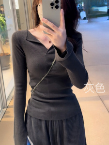 韩系纯色长袖V领修身显瘦百搭t恤上衣2025早秋新款针织打底衫女装