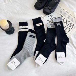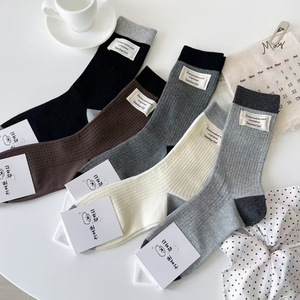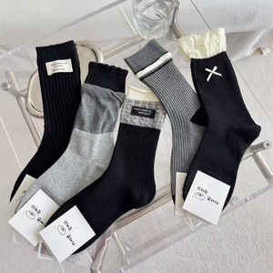 韩式简约拼色堆堆袜子灰冷感时尚潮流布标中筒洋气外穿街头风长袜