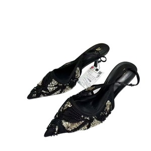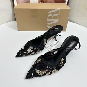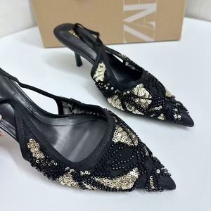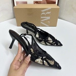 ZAR夏季新品 女鞋 黑色亮片串珠后绊带气质细高跟鞋尖头包头单鞋