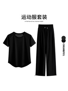 瑜伽短袖健身长裤套装女大码胖mm夏季户外跑步透气速干宽松运动服