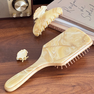 新款高级感大理石纹理发夹大号气垫梳蓬松美发梳子气质百搭鲨鱼夹