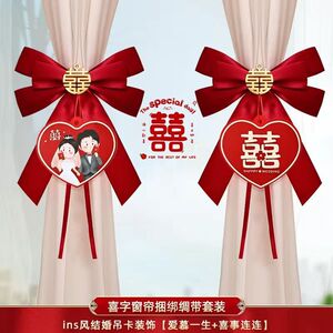 结婚窗帘装饰婚房布置蝴蝶结绑带套装婚礼男女方新房婚庆蝴蝶结装