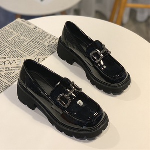 漆皮英伦小皮鞋女2025春秋季新款水钻平底真皮乐福鞋软底单鞋